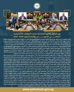 المهندس كريم بدوى : يعتمد الموازنات الاستثمارية لشركتي السويس والنصر للبترول 2026- 2027
