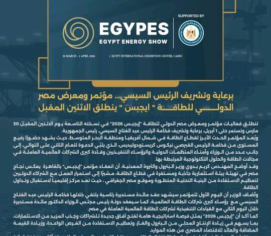 برعاية وتشريف الرئيس السيسي… مؤتمر ومعرض مصر الدولي للطاقة ” ايجبس 2026 ” ينطلق الاثنين المقبل