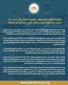 بقيمة تتجاوز مليار دولار.. بتروجت تحصل على إسناد مبدئي لمشروع تطوير حقل حاسي بئر ركايز في الجزائر