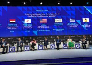 جاء ذلك خلال مشاركة الوزير في جلسة نقاشية وزارية بعنوان ” تسريع وتيرة استغلال إمكانات الغاز الكاملة في منطقة شرق المتوسط ” والتي أقامها منتدى غاز شرق المتوسط ضمن فعاليات مؤتمر غازتك 2022 المنعقد حالياً بمدينة ميلانو الإيطالية وضمت كل من السيدة ناتاشا بيليديس وزيرة الطاقة والصناعة والتجارة القبرصية والسيدة لورا لوشمان نائب أمين مساعد مكتب موارد الطاقة بوزارة الخارجية الأمريكية ، والسيد أسامة مبارز الأمين العام لمنتدى غاز شرق المتوسط، والسيدة ألكساندرا سدوكو الأمين العام للطاقة والثروة المعدنية اليونانية، والسيد جويدو بروسكو رئيس عمليات الموارد الطبيعية بشركة إيني الإيطالية ..