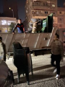 حين يهدأ شارع المريوطية – هرم ويبدأ صخب المجزر الآلي في التراجع، تتحرك حملة أخرى لا تعرف التوقيت المكتبي، بقيادة اللواء أحمد ثابت، رئيس حي الهرم، وبرفقة تامر جورج نائب رئيس الحي وأحمد عبدالهادي مدير إشغالات القطاع الجنوبي وقطب الشاهد من قوة الحملة، خرجت الأجهزة التنفيذية بالقطاع الجنوبي ليجمعوا الرصيف المفقود، أسفرت الحملة عن 270 حالة إشغال صودرت من شوارع «المريوطية – هرم، والمجزر الآلي، واللبيني – هرم، والأورمان أسفلت، والأورمان تراب»، سارا قطب الشاهد وعثمان علي — مدير المتابعة الليلية، أمام عربات شرطة المرافق، فيما مجموعة العمل تسجل وتحمّل وتعيد الهدوء إلى شوارع القطاع الجنوبي بالهرم.