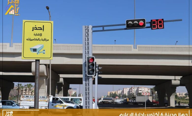رئيس الجهاز تركيب إشارات مرور مزودة بكاميرات إلكترونية بتقاطع الطريق الدائري الأوسطي مع المحور المركزي بمدينة 6 أكتوبر