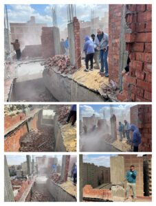 وأكد اللواء أحمد ثابت رئيس حي الهرم أن الحملة المكبرة أسفرت عن إزالة فك شدة خشبية بالكامل بشارع الشهيد أحمد حمدي، كما نفذ الأستاذ رضا دويدار نائب رئيس حي الهرم بالقطاع الشمالي، حالة إزالة لسقف وحوائط دورين بالسادس والسابع بعد الأرضي، في 8 شارع جمعة اللبان من شارع اللبيني _ فيصل بالقطاع الشمالي، واستكمل اللواء أحمد ثابت رئيس حي الهرم متابعته لإزالة المخالفات، ووجه بتنفيذ إزالة أسقف وأعمدة وحوائط الدور الثاني عشر والثالث عشر، بعد الأرضي والبدروم، بشارع العشرين الجديد من شارع الشيخ ريحان بقطاع كفر طهرمس، بمشاركة نائب القطاع الأستاذ أحمد عبدالبصير، والأستاذ سيد عبدالرحيم مدير إشغالات القطاع، ووجه رئيس حي الهرم باتخاذ كافة الإجراءات القانونية.