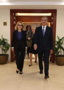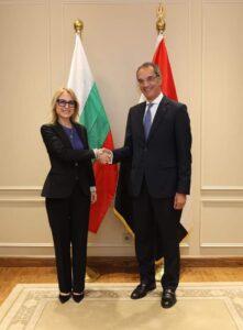 التقى الدكتور/ عمرو طلعت وزير الاتصالات وتكنولوجيا المعلومات السيدة/ ميلينا ستوتشيفا وزيرة الابتكار والنمو ببلغاريا والوفد المرافق لها لمناقشة فتح آفاق للتعاون المشترك وتبادل الخبرات بين مصر وبلغاريا فى مجالات الاتصالات وتكنولوجيا المعلومات.