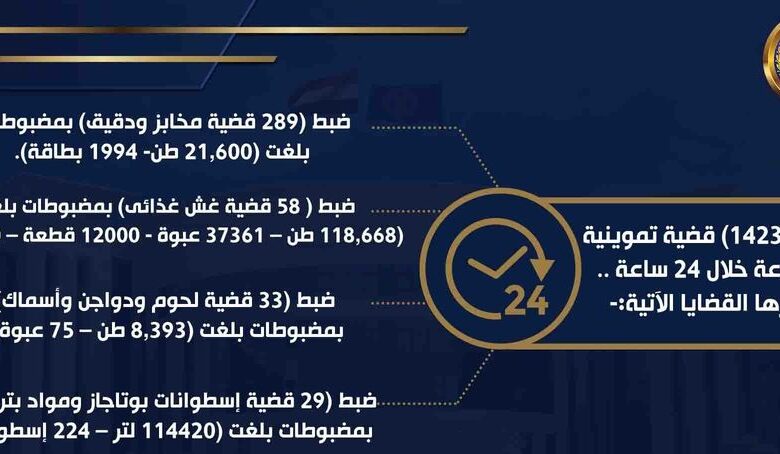 ضبط (1423) قضية_تموينية متنوعة خلال 24 ساعة.. أبرزها القضايا الآتية:-