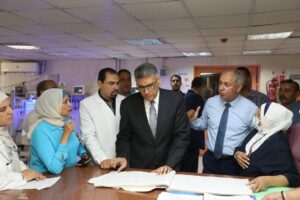 وخلال جولته بالمستشفى تفقد المحافظ عددًا من الأقسام، شملت: وحدة الغسيل الكلوي، وحدة التشخيص عن بُعد، مركز الأبحاث الإكلينيكية، غرفة تحضير التغذية العلاجية، قسم الأطفال المبتسرين والحضّانات، بالإضافة إلى الأقسام الداخلية، حيث اطمأن على توافر الأدوية والمستلزمات الطبية.