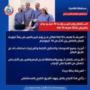 معجزة طبية بمستشفى المقطم.. فريق جراحي ينزع ورمًا يزن 10 كيلوجرامات من بطن طفلة 15 عامًا