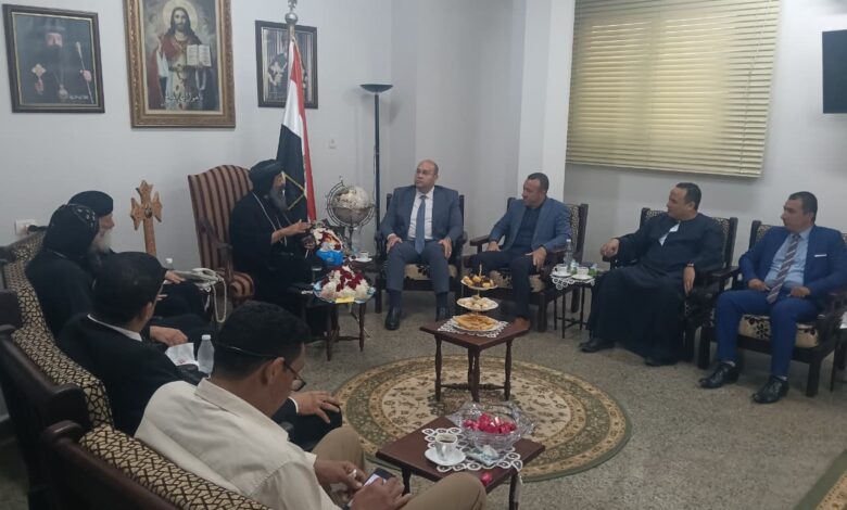 نائب محافظ الجيزة يزور مطرانية الأقباط الأرثوذكس بأطفيح للتهنئة بعيد القيامة