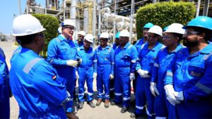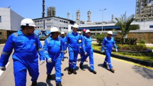 و تجول الوزير بمختلف الوحدات الانتاجية داخل الشركة التي تنتج نحو 30% من الإنتاج المحلي للبنزين إضافة إلى مادة البنزول اللازمة لبعض مشروعات صناعة البتروكيماويات ،والتقى الوزير بالعاملين والعاملات داخل وحدات الشركة ومرافقها المختلفة للاطمئنان على سير العمل، مؤكداً علي أهمية الدور الذي يقومون به في تنفيذ المحاور الاستراتيجية للوزارة بهدف زيادة الإنتاج المحلي وتقليل الفاتورة الاستيرادية .