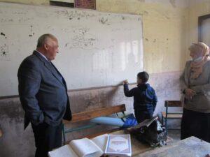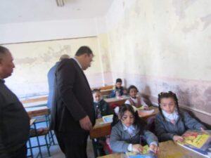 بزياره مدرسه عمر ابن الخطاب الابتدائيه لتفقد مدي سير العمليه التعليميه في بدايه الترم الثاني للعام الدراسي ،