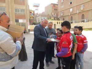 وقام سيادته بتوزيع ادوات مدرسيه علي التلاميذ بالتعاون مع مؤسسة خير الكلام لتنميه المجتمع وكان بصحبه