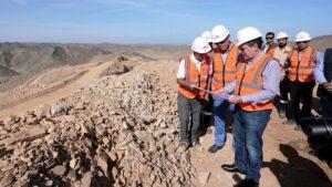 وتفقد الوزير ميدانياً ما قامت به الشركة خلال فترة البحث الأولى ومدتها سنتين من بنية تحتية واسعة النطاق ، مهدت الطرق لربط جميع المناطق المستهدفة للاستكشاف والحفر بمنطقة الامتياز.