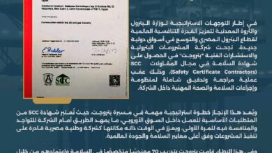 بتروجت : تحصل على شهادة السلامة SCC تمهيدًا لدخول السوق الأوروبي للمرة الأولى