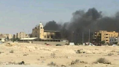 حريق هائل بكنيسه الانبا بيشوي بالمنيا